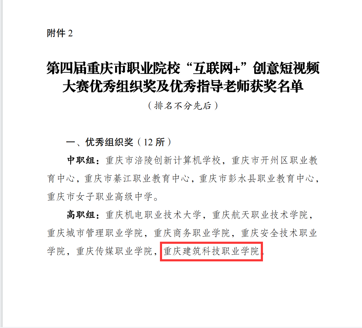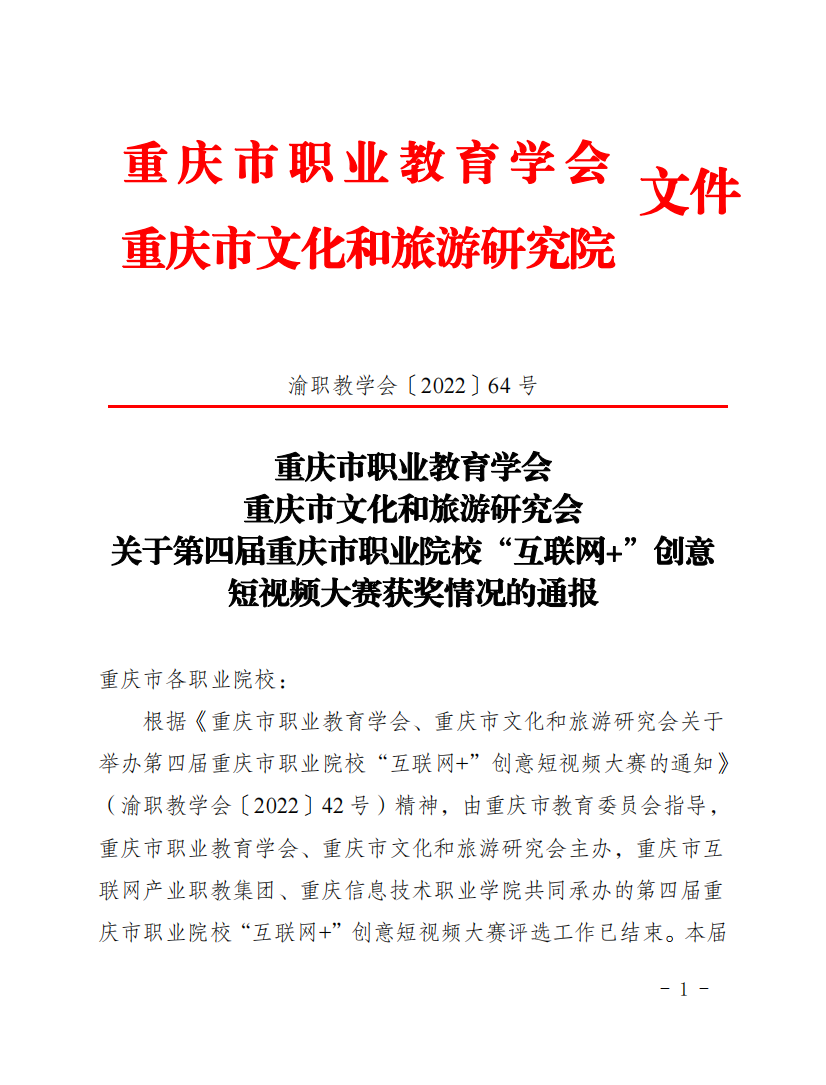 据了解,大赛由重庆市教育委员会指导,重庆市职业教育学会、重庆市文化和旅游研究会主办。本届大赛全市共有45所中、高职院校参赛,共计收到有效参赛作品213个,网络投票期间视频点击量达250万余次,收到有效投票175万余票。