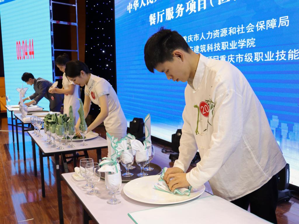 本次大赛分国赛精选和世赛选拔两个赛项,分别为全国技能大赛和世界技能大赛选拔赛发掘培育高技能人才,同时进行中国第二届职业技能大赛重庆市选拔赛餐厅服务项目竞赛。餐厅服务(国赛精选)项目围绕中式宴会设计、摆台、餐饮服务、折花展台等模块开展技能比拼;餐厅服务(世赛选拔)项目围绕西餐休闲餐厅服务、精致零点餐厅服务、酒吧服务等模块开展技能比拼。选拔赛将角逐出一等奖1名,二等奖2名,三等奖3名,前10名选手将纳入重庆市集训队进行强化训练并通过三个阶段性考核,最终选拔出重庆代表队伍参加全国技能大赛。