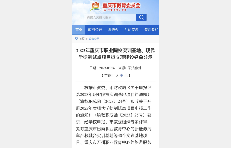 近日,重庆市教育委员会公布了《2023年重庆市职业院校现代学徒制试点项目立项建设名单》,Kaiyun官方网站登录入口获批为重庆市现代学徒制项目试点单位,试点专业为建筑工程技术专业。