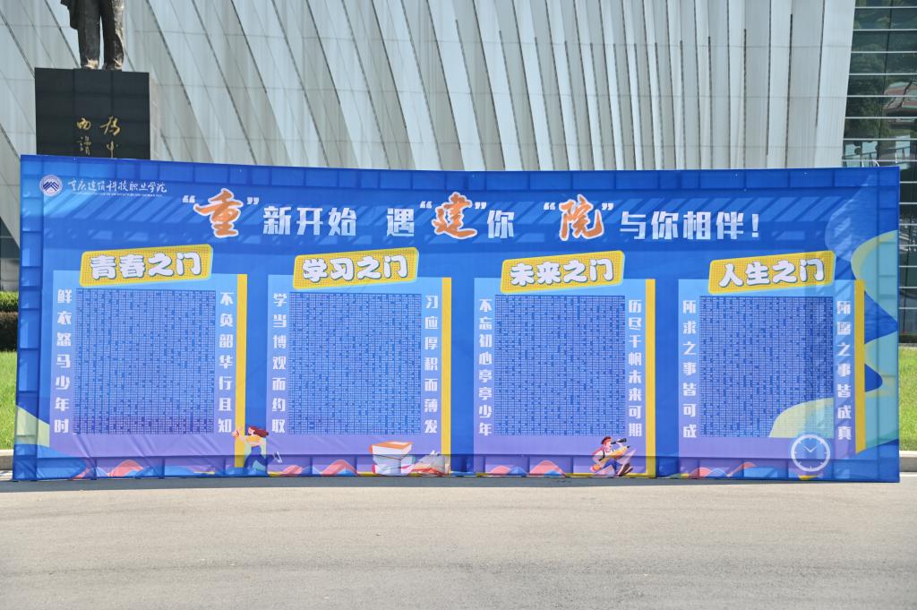 “这也太有创意了,找了半天才找到我的名字。”几乎每个路过的新同学都要围着这面“青春之门、学习之门、未来之门、人生之门”姓名墙感慨一番。远远望去,蓝色的展板,写满对新生未来的祝福。再走近一看,门内是由4586个新生的名字拼成的。