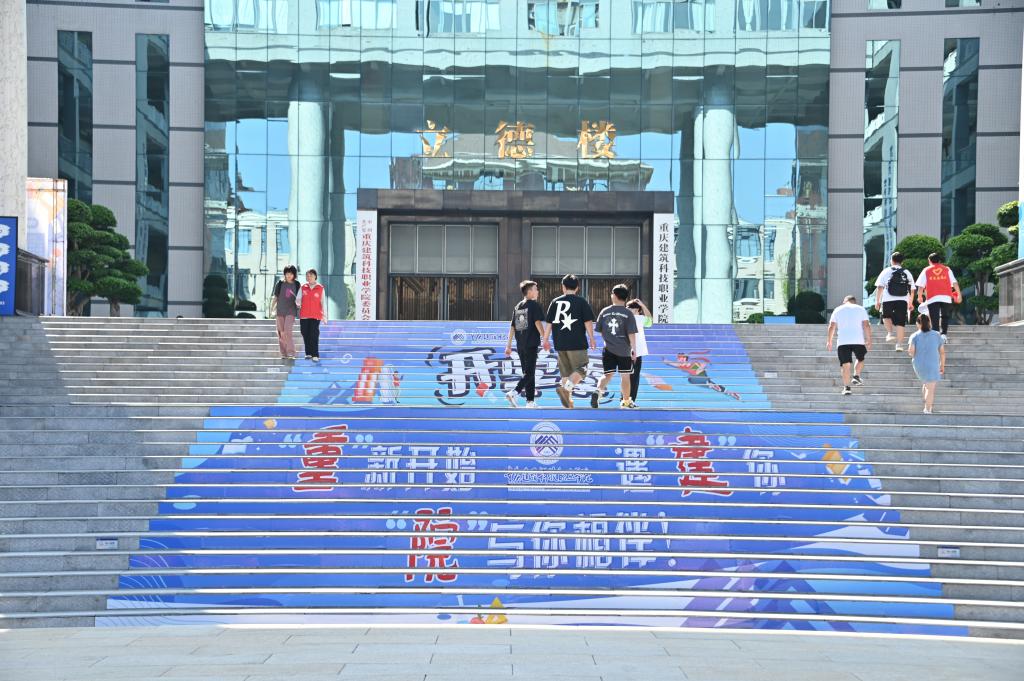 星光大道的合影背景展板,立德楼前、学术报告厅的心愿祝福梯步贴,校园内外洋溢着浓厚的迎新氛围,满“新”欢喜,赏“新”悦目。