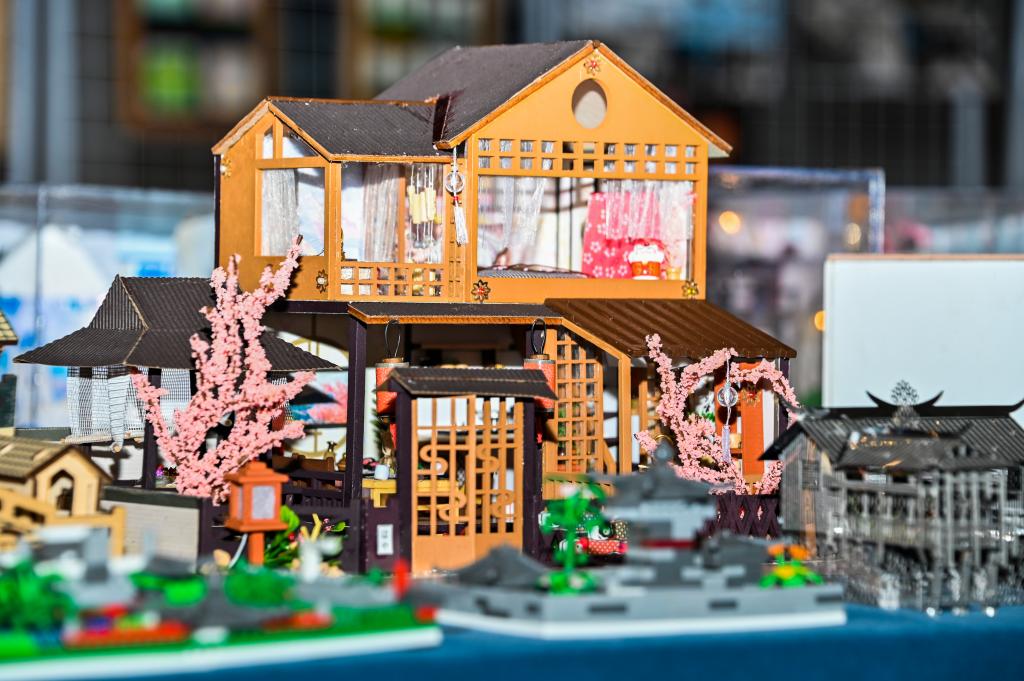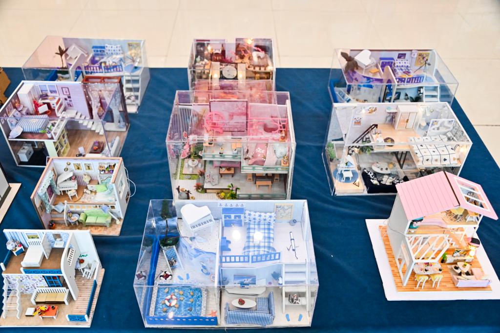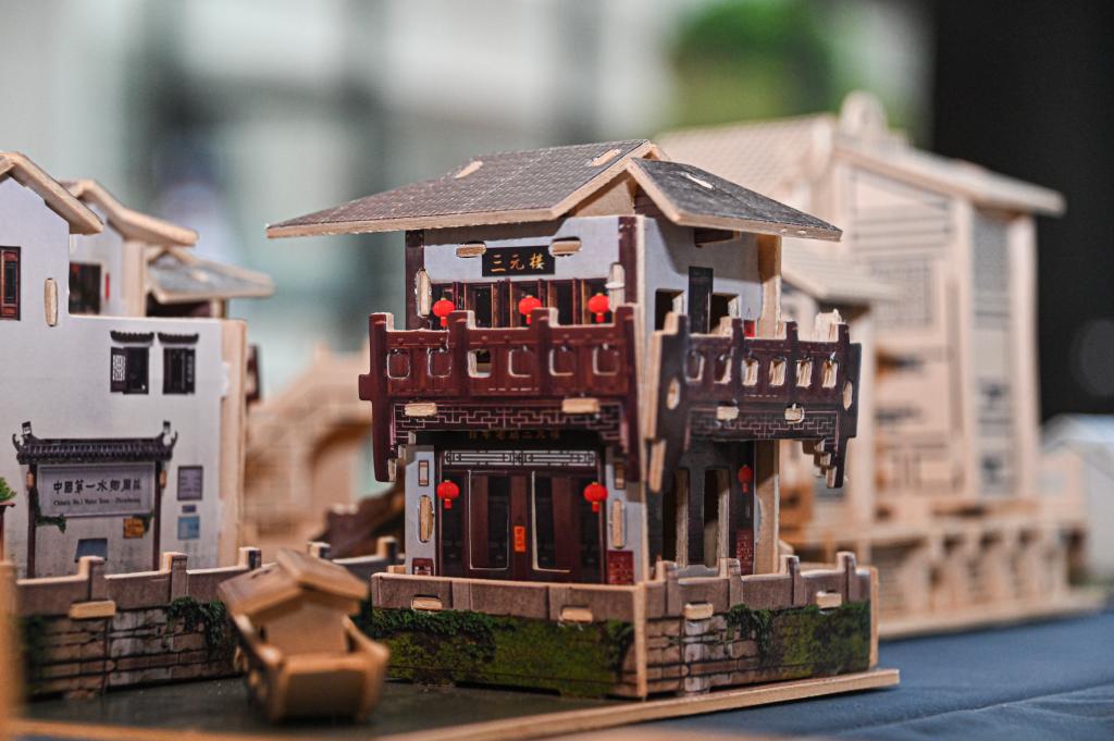 不仅如此,展览还特别设置了木作和剪纸作品展示区,展出了学院文化精品课:“华夏匠心——木艺传承与创新”部分课堂作品,为参观者提供了与艺术互动的机会。参观者可以近距离欣赏到建筑城规学院学生精心制作的木作作品,了解到木作的工艺和知识。同时,他们还可以亲手体验剪纸艺术,感受到剪纸的魅力和独特之处。