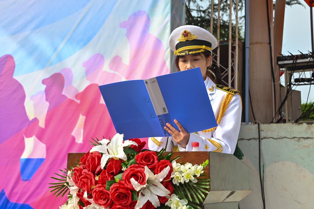 会上,学员代表二营六连2023级移动商务专贯本1班刘虹苗发言,她代表全体2023级同学向付出辛勤劳动的教官、老师和学校表示深深的感谢!在军训过程中,同学们领略到坚强、团结、自强不息对于人生的意义。在今后的学习生涯中,我们将继续发扬严格自律、艰苦奋斗、百折不挠的军人精神,把军训中饱满的热情、顽强的毅力、必胜的信心化成学习的动力,进步的动力,积极主动地投入到充满挑战的学习和生活中去,做有责任、有担当、有学识、有修养的新时代好青年。