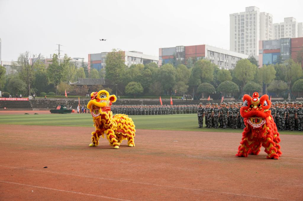 伴随着庄严的奏唱国歌仪式后,2023级学生军训成果展示正式开始。在学校田径运动场上,军训团团旗格外鲜艳,伴随着激情高亢的音乐,各连队在教官的口令声中进行了分列式、战鼓舞狮、军体拳、刺刀操、匕首操、警棍操、战术等军训成果展示。