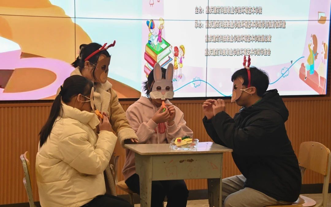 活动主持人以激情洋溢的声音拉开了比赛帷幕,102名备赛选手们分为29组,分别登台表演了丰富多彩的主题故事,节目包括《没有牙齿的大老虎》《盲人摸象》《拔萝卜》《卖火柴的小女孩》《三只小猪》等。每个节目都经过参赛选手们的精心编排,各组参赛选手展现出了不同的表演风格,有的激情洋溢,有的动人心弦,有的俏皮幽默。通过抑扬顿挫的语言、丰富的表情和生动的肢体动作,同学们展现了扎实的基本功和多样的才艺。选手表演结束后,3名评委老师对比赛给予点评,对选手们的精心准备、精彩讲述和别出心裁的演绎给予肯定。同时,评委老师也针对各组同学的表演给予指导和建议,特别是针对故事内容的创新和表演角色的塑造方面。