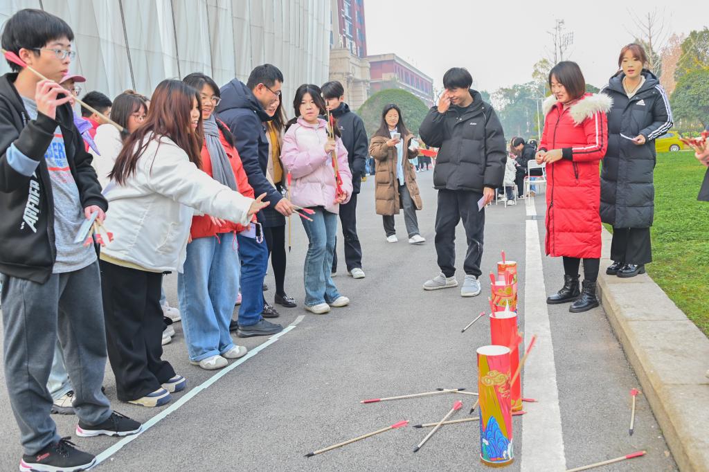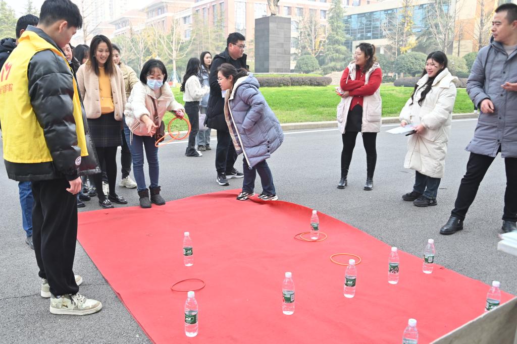 “书山有径独步寻花”主题跨年游园会,吸引师生踊跃参与。游园会内容丰富多彩,包括捐书开盲盒、投壶、快乐“圈圈圈”、博览群书、你画我猜、听歌识曲、覆射之成语大杂烩、飞花令、“缘分相聚,快乐同宵”之吸福气等项目。