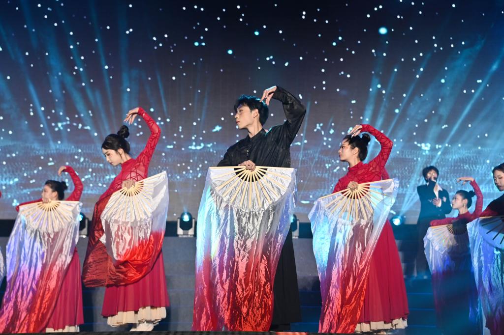 由数字工程学院师生带来的书法民乐古典舞《重建院颂》,呈现了四十年来学校始终坚持挖掘、弘扬、传承中华优秀传统文化,展现了学校承文明之血脉,传民族之德行,推动中华民族伟大复兴的使命。