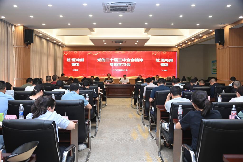 8月29日下午,学校在大数据会议中心举行党委中心组2024年第八次学习(扩大)会,组织专题学习贯彻党的二十届三中全会精神,全体校领导、党委委员、处级干部参会。
