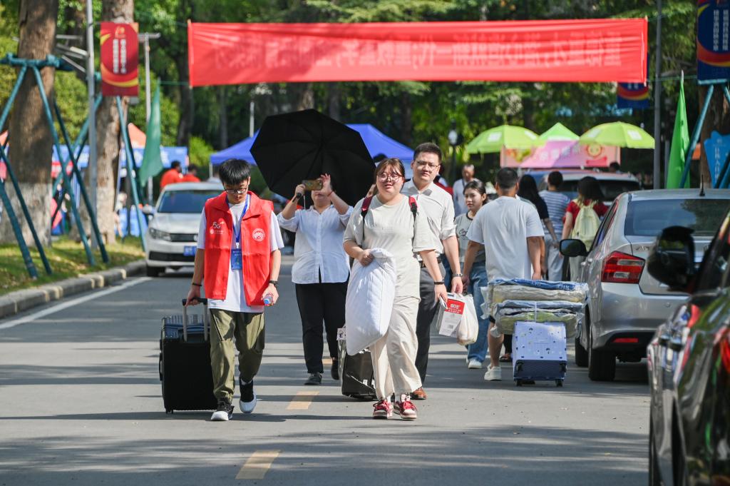 报到现场,校领导前来看望报到的2024级新生和家长,并指导迎新工作,叮嘱全体工作人员要坚持以学生为中心,以细致的工作、周到的服务做好迎新工作。