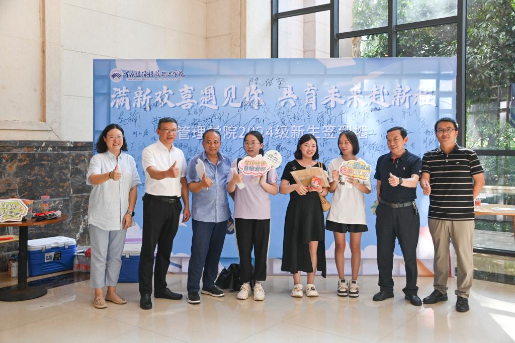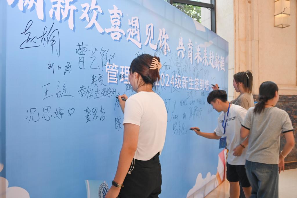 迎新现场,各部门、各学院特色纷呈。校园里随处可见“热烈欢迎2024级新同学”的标语和展板,写着 “满‘新’欢喜遇见你 共育未来赴征程”的新生签到墙和立体合影展台等,精心准备了别具一格的“迎新盛宴”,营造了秩序井然、热情温馨的迎新氛围。