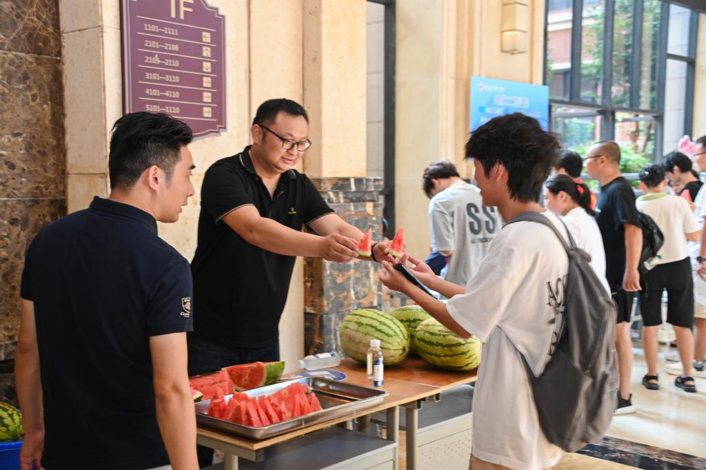 面对持续的高温天气,学校贴心为大家准备了冰矿泉水、凉茶、冰粉凉虾、冰镇西瓜、雪糕等消暑食物,藿香正气液、风油精等防暑降温物资,为迎新点位准备了空调扇,以实际行动传递学校的关怀与温暖。