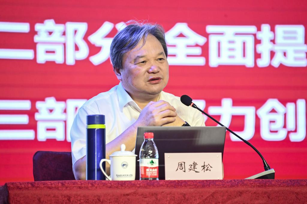 专题讲座上,周建松教授以“职业教育高质量发展与学校关键能力和关键项目建设”为题,从把握形势政策出发,围绕习近平总书记对职业教育发展的三次重要讲话精神,详细解读了中办、国办三个文件,用2个“311”和2个“125”深刻阐释了发展职业教育的重大意义。