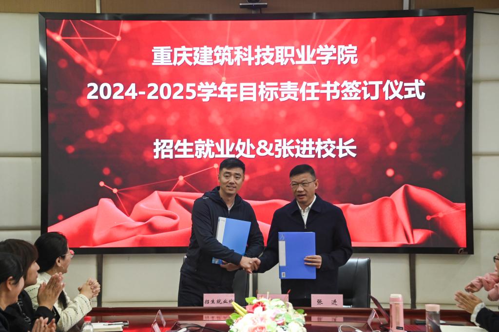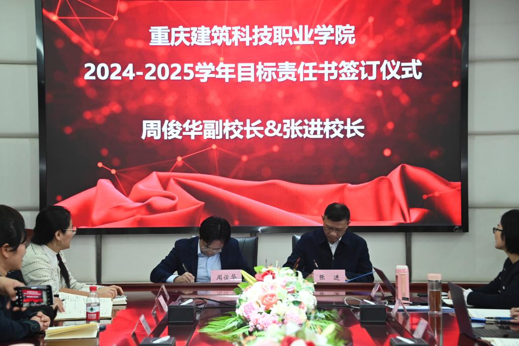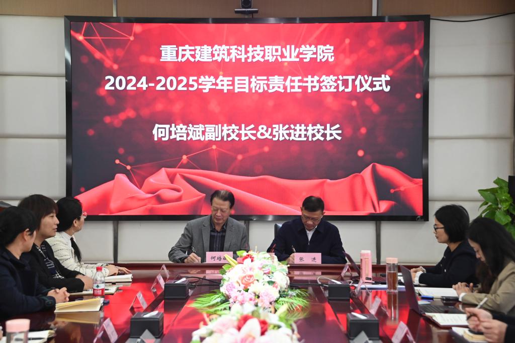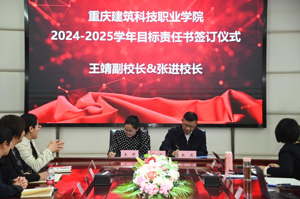 会上,校长张进、党委书记何光明分别与学校各分管领导、职能部门和二级学院负责人签订了目标责任书。