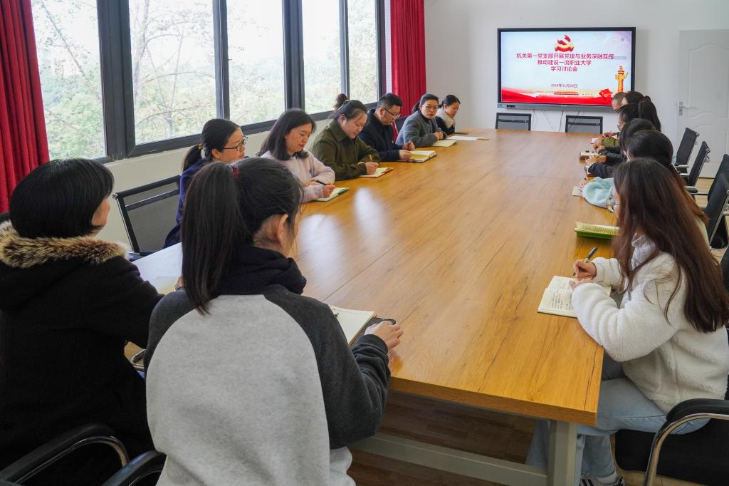 11月28日,机关第一党支部开展党建与业务深融互促,推动建设一流职业大学学习讨论会,会议由机关第一党支部书记彭锦华主持,机关第一党支部全体党员参加。