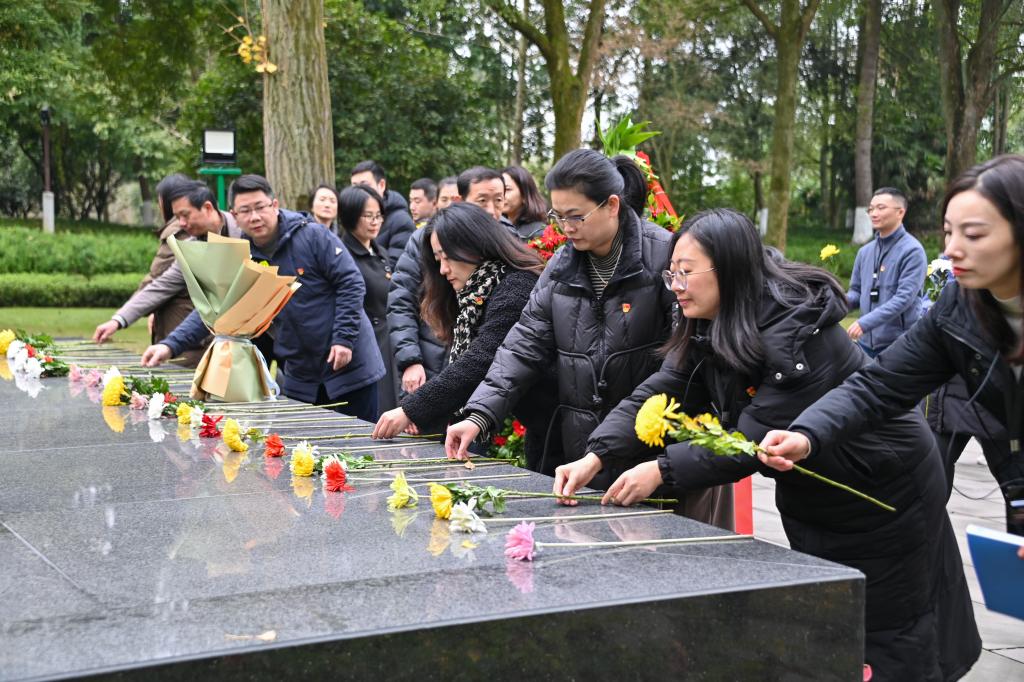 在邓小平铜像广场,全体党员庄严肃立,向邓小平铜像敬献花篮,学校党委书记何光明上前整理花篮上的缎带,深切缅怀这位中国改革开放和现代化建设的总设计师。全体党员重温入党誓词,用铿锵誓言表达对党忠诚、牢记使命的坚定决心。