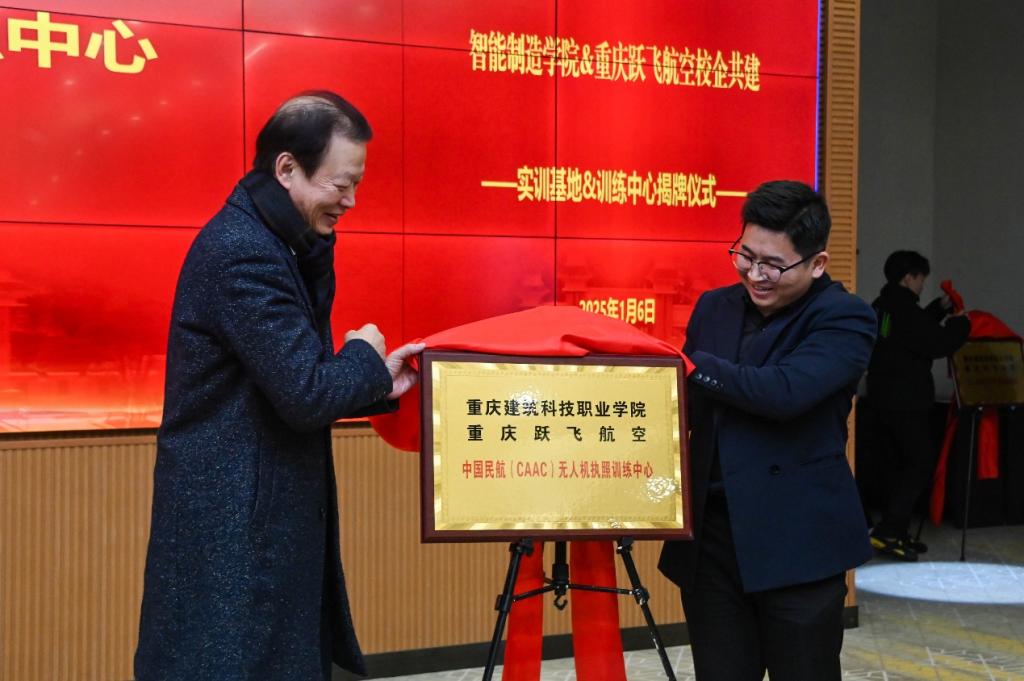 1月6日下午,学校智能制造学院与重庆跃飞航空科技有限公司共同成立无人机生产性实训室基地与中国民航(CAAC)无人机执照教学中心。并在大数据中心举行了揭牌仪式。学校何培斌副校长、周俊华副校长和王靖副校长等领导,同重庆跃飞航空科技有限公司樊小龙总经理,以及无人机校企合作专业的学生共同见证了揭牌仪式。