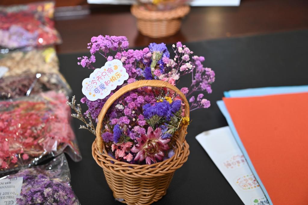 在“巾帼逐梦绽芳华”环节,大家巧妙搭配干花、枝叶与装饰物,用胶枪固定、调整造型,精心制作成永生花作品。零散的材料逐渐蜕变为雅致的团扇、精美的花篮和实用的笔筒。活动结束后,校工会为每位参与者送上定制纪念品。