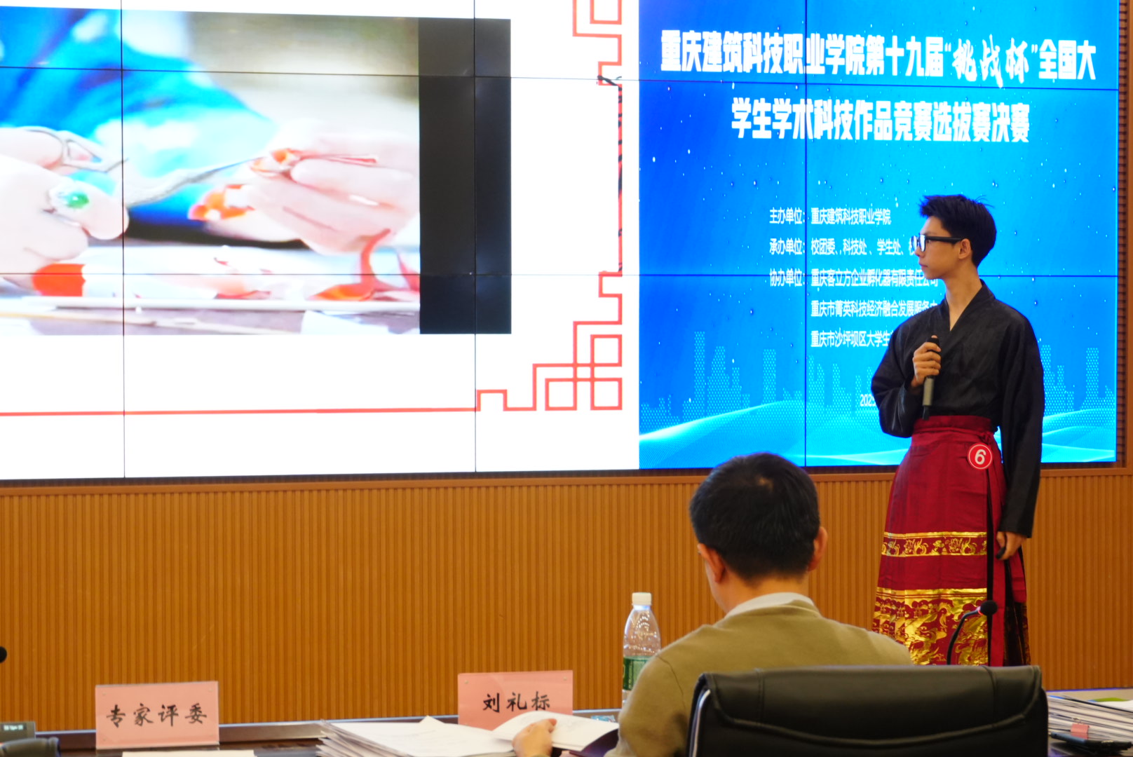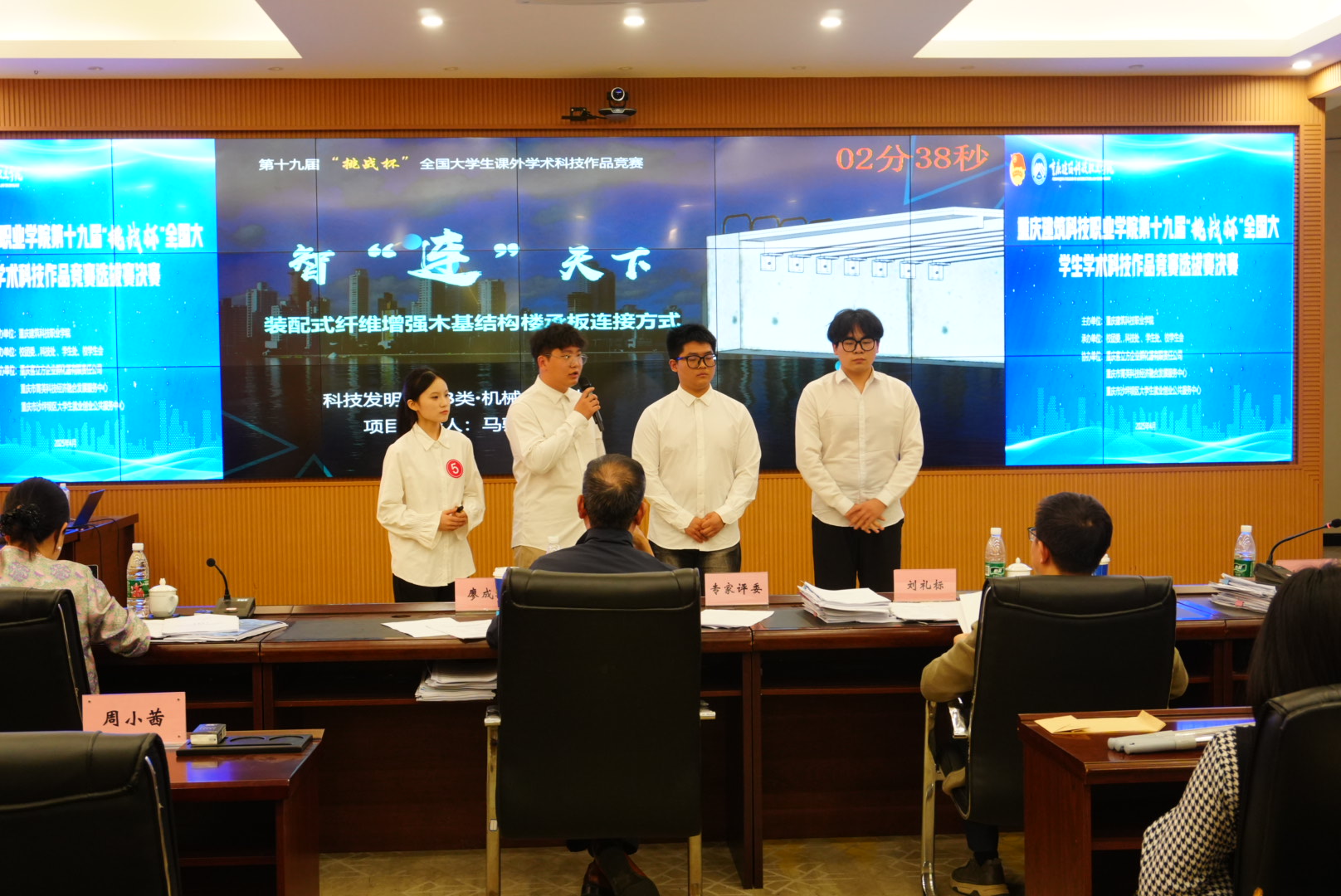本次决赛共有18个项目入围,涵盖自然科学类学术论文、哲学社会科学类社会调查报告、科技发明制作类和人工智能专项四大类别。比赛采用“5+3”答辩模式,由重庆大学廖成林教授等4位专家组成的评审团从学术性、创新性、科学性、实用性等维度进行专业评审。