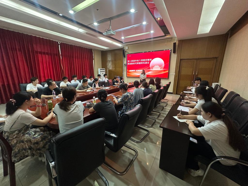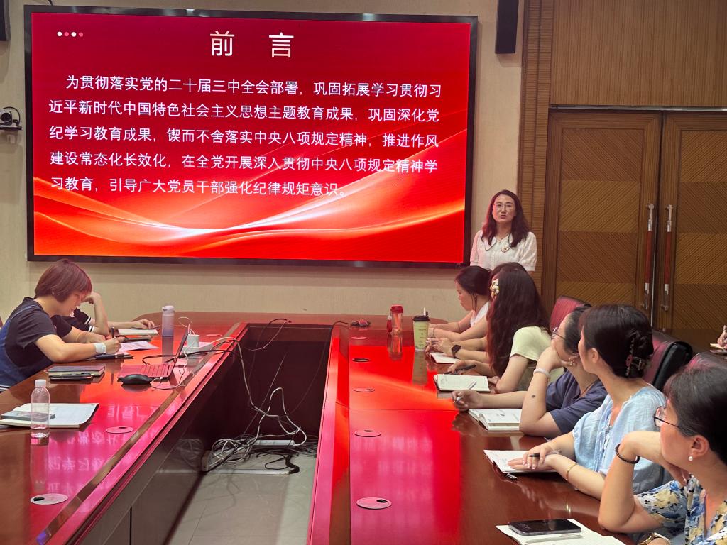 学院副校长王靖同志重点解读中央八项规定精神的核心要义及其在党的作风建设中的重要性,并列举了教育系统典型案例,让全体党员深刻认识到,加强作风建设不仅是保持党的先进性和纯洁性的必然要求,更是推动学院各项工作高质量发展的重要保障。王靖同志强调,全体党员要通过集中教育提高党性修养、加强党的作风建设,要结合自身工作实际深入思考,对于学习过程中发现的差距和问题,坚持立行立改,扎实开展学习教育。