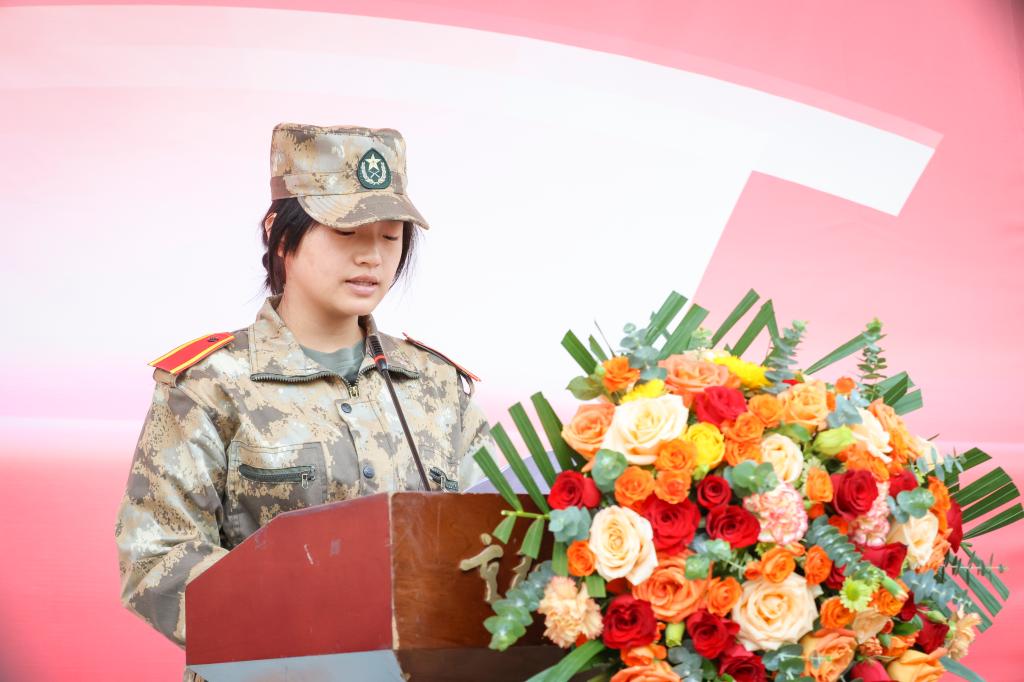 会上,学员代表智慧康养学院2025 级学前教育一班谢竺君发言,她代表全体2025级同学向付出辛勤劳动的教官、老师和学校表示深深的感谢!在军训过程中,同学们领略到坚强、团结、自强不息对于人生的意义。在今后的学习生涯中,我们将继续发扬严格自律、艰苦奋斗、百折不挠的军人精神,把军训中学到的纪律观念、团队精神、感恩情怀融入到日常的学习、工作和生活中去,不断提升自己的综合素质,成为对社会有用的人才。时刻保持积极的人生态度,把握好大学三年的每一分、每一秒,书写璀璨辉煌的青春华章!
