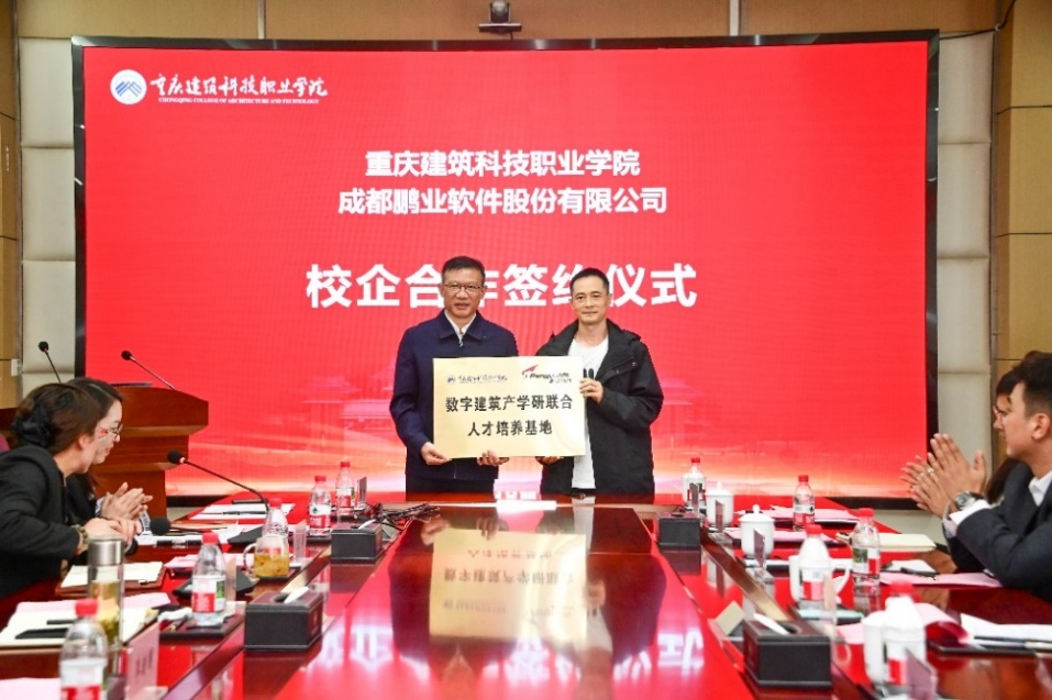 在校企合作签约环节,学校与成都鹏业软件股份有限公司签署了合作协议,并为“数字建筑产学研联合人才培养基地”与“数字建筑产学研联合校外实践基地”授牌。会议最后,校企双方共同签订了本学年的专业共建服务细则,为深化产教融合奠定了坚实基础。