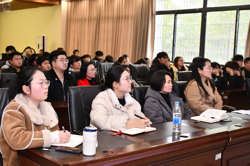 宣讲伊始,李朝国副书记首先回顾了党的二十届四中全会召开的重大意义,强调全会对于坚持和完善中国特色社会主义制度、推进国家治理体系和治理能力现代化的重要指引作用。随后,他将全会精神分为六大部分,逐一深入讲解,条理清晰、重点突出。在关键内容讲解环节,李朝国副书记通过联系实际生活和典型案例,让理论知识更加生动具体。师生们全神贯注、认真记录,精彩内容屡次引发阵阵掌声。
