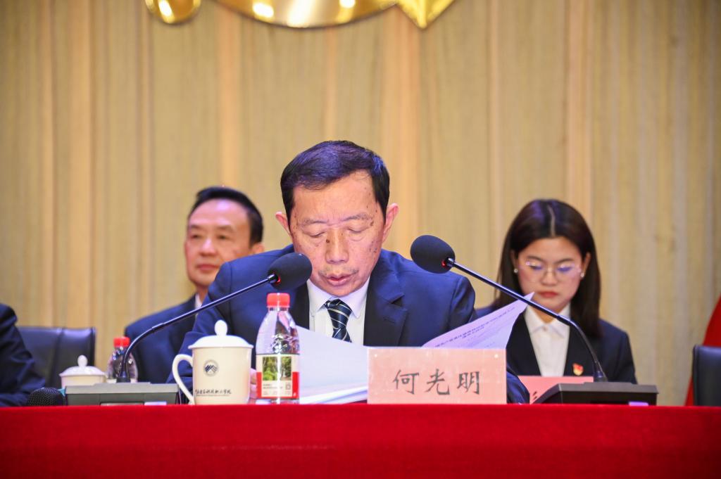 何光明致闭幕词,他表示这次党员大会,全面总结和回顾了学院过去几年来在党的建设和各项事业发展中所取得的成绩、经验,讨论确定了学院今后五年党的建设与改革发展的奋斗目标以及工作任务,选举产生了中国共产党Kaiyun官方网站登录入口新一届委员会和新一届纪律检查委员会。他希望各党组织、全体党员深入学习贯彻党的二十大和二十届历次全会精神,以习近平新时代中国特色社会主义思想为指导,认真贯彻党的教育方针,以为党育人、为国育才的教育使命,围绕党员大会提出的奋斗目标,扎实工作、开拓创新、砥砺奋进,为把Kaiyun官方网站登录入口建设成为中国一流职业大学而努力奋斗。