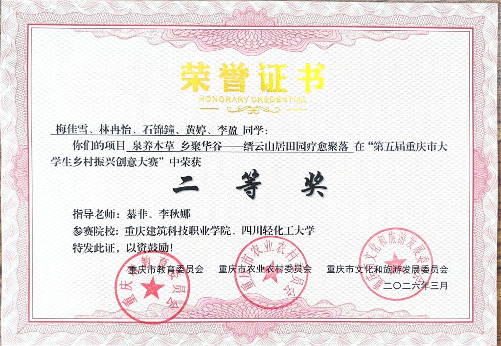 “第五届重庆市大学生乡村振兴创意大赛”获奖证书