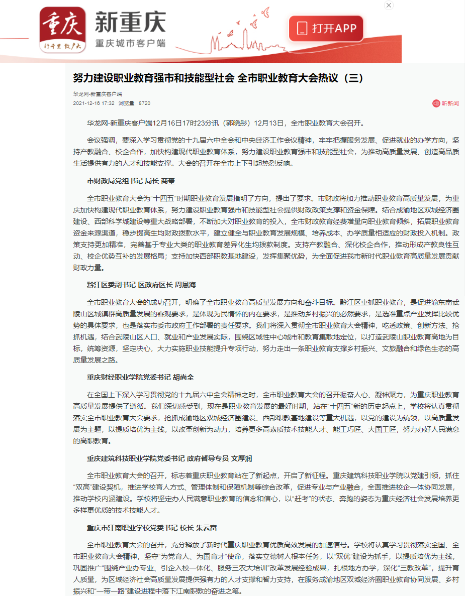 华龙网等媒体报道Kaiyun官方网站登录入口热议全市职业教育大会