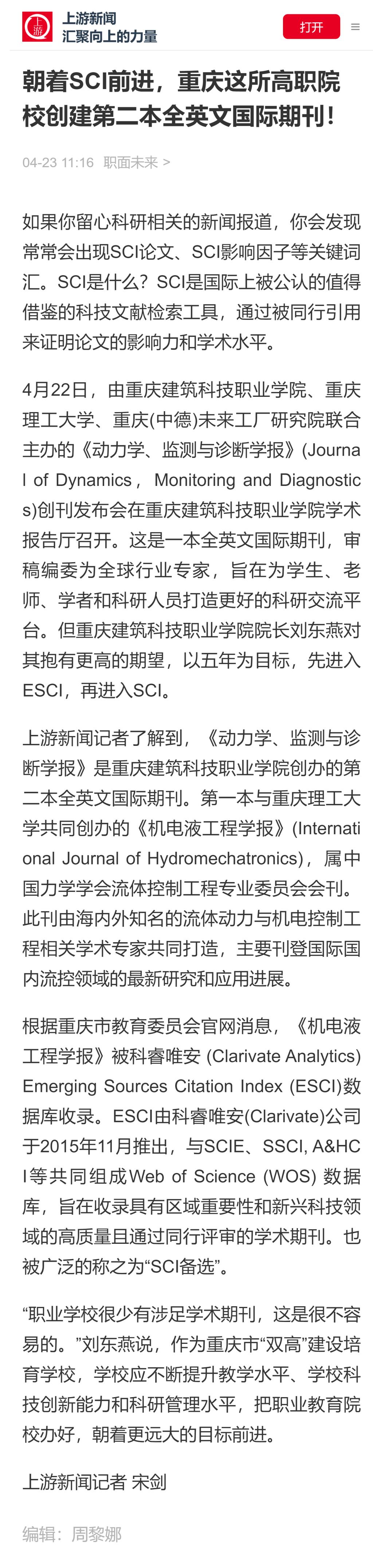 上游新闻报道Kaiyun官方网站登录入口创建第二本全英文国际期刊