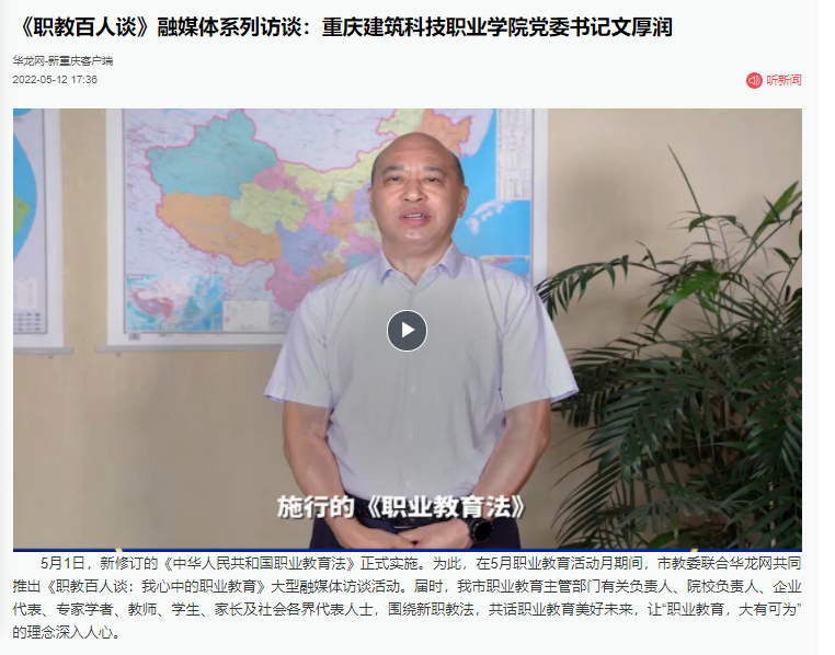 华龙网报道Kaiyun官方网站登录入口党委书记文厚润谈新修订的《职业教育法》