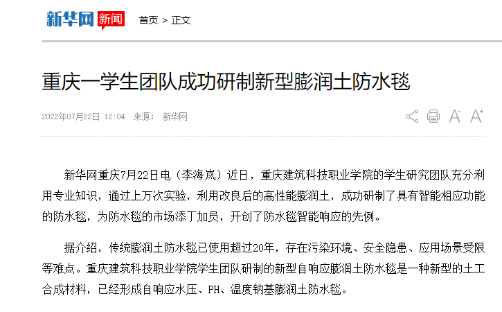 【新华网】重庆一学生团队成功研制新型膨润土防水毯