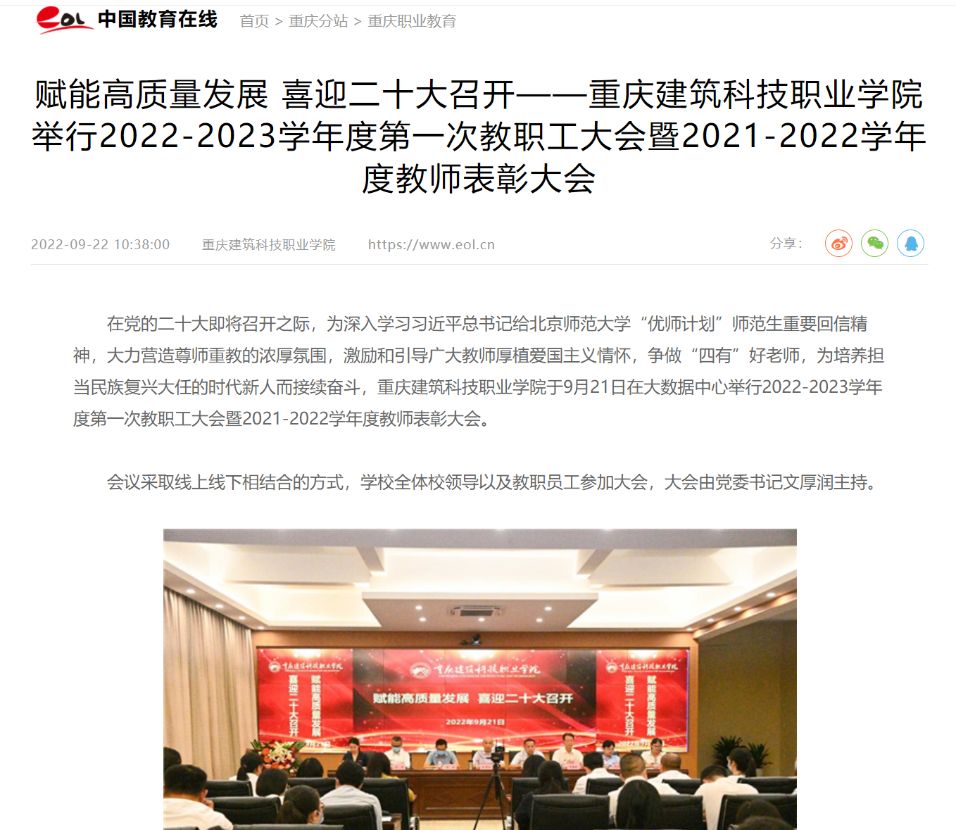 【中国教育在线】赋能高质量发展 喜迎二十大召开——Kaiyun官方网站登录入口举行2022-2023学年度第一次教职工大会暨2021-2022学年度教师表彰大会
