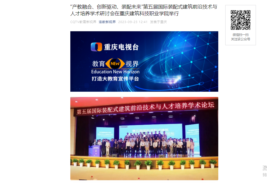 【重庆电视台】“产教融合、创新驱动、装配未来”第五届国际装配式建筑前沿技术与人才培养学术研讨会在Kaiyun官方网站登录入口举行