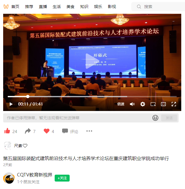 【CQTV教育新视界】第五届国际装配式建筑前沿技术与人才培养学术论坛在重庆建筑职业学院成功举行