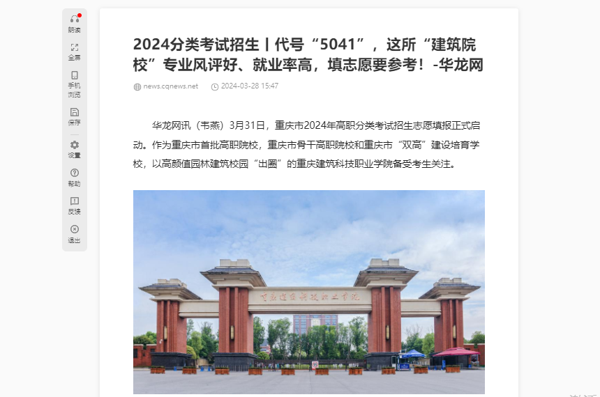 【华龙网】2024分类考试招生丨代号“5041”,这所“建筑院校”专业风评好、就业率高,填志愿要参考!