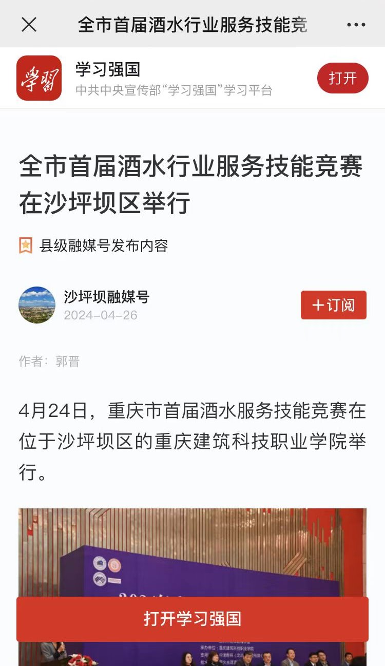 【学习强国】全市首届酒水行业服务技能竞赛在沙坪坝区举行