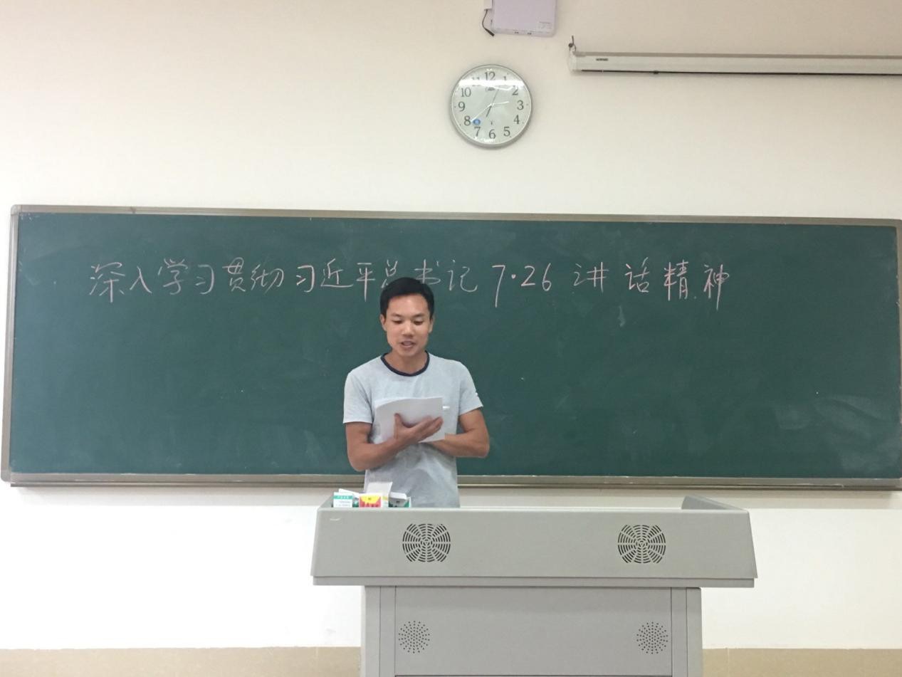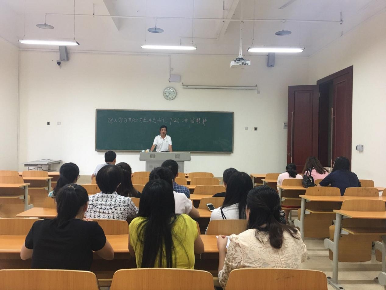 为深入学习贯彻习近平总书记“7•26”重要讲话精神,9月22日下午,思想政治教学与基础教学部组织全体党员教师在5208教室进行学习。学习会议由系部主任梁保社主持,谭启军老师作为代表发言。