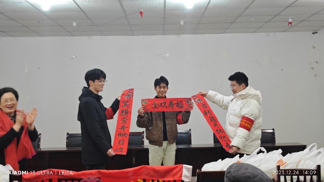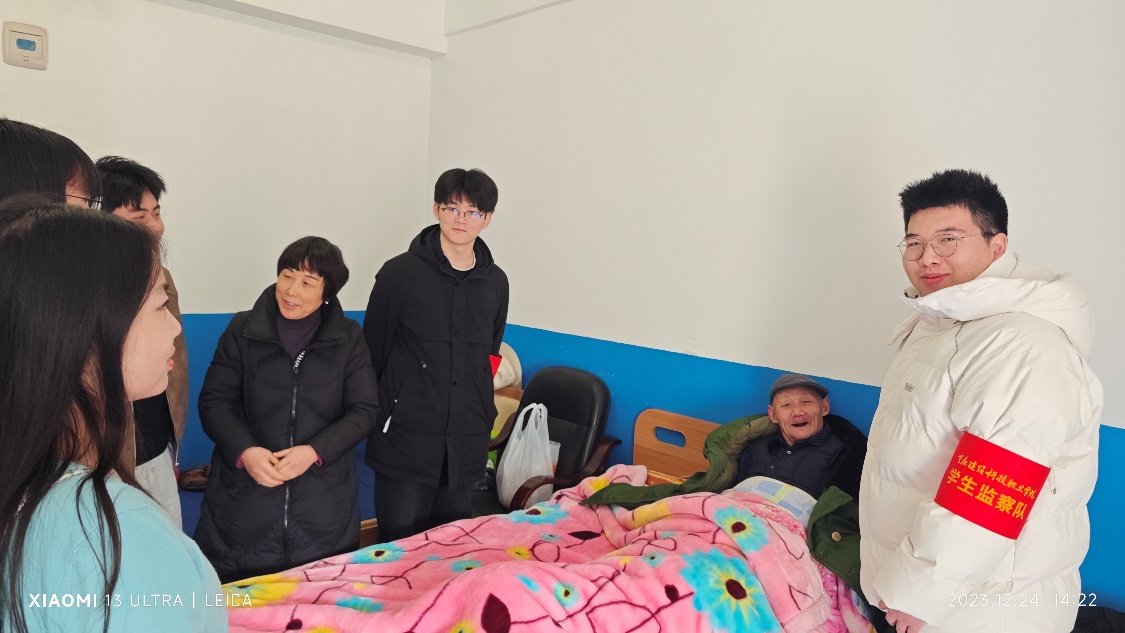 20231224日下午,在辞旧迎新之际,学校纪检监察室张意老师、基础教学部陈晓辉老师带领第八届学生监察队学生代表,赴重庆高新区香炉山街道敬老院开展了献爱心慰问活动,老师和同学们与敬老院的爷爷、奶奶们亲切交谈,为爷爷、奶奶送去温暖和关爱。