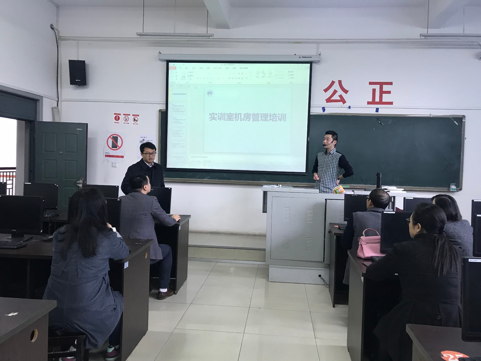2018117日,教务处组织各学院实验中心主任及专职实验(实训)室管理老师开展了实训室机房管理培训。本次培训由学校信息化处提供技术支持,内容主要包括机房类实训室的管理内容和工作流程、机房类实训的日常维护及机房类实训室的软件安装等。这些内容都是实验室管理老师在进行机房实训室维护中所涉及的内容。通过本次培训,让实验室管理老师明确了机房管理的工作内容,熟悉了机房管理工作的流程及设备故障的快速处理,能更好的为日常教学保驾护航。