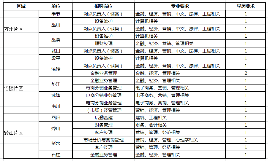 (二)学历要求硕士研究生的岗位,特别优秀可放宽至全日制本科毕业生;非主城区域的岗位,优先考虑本地生源。