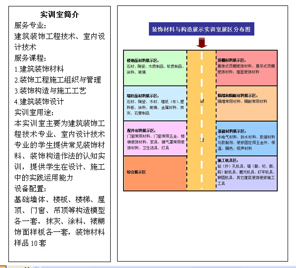 上一篇:装饰工程施工组织与招投标模拟实训室 下一篇:工程监理实训室