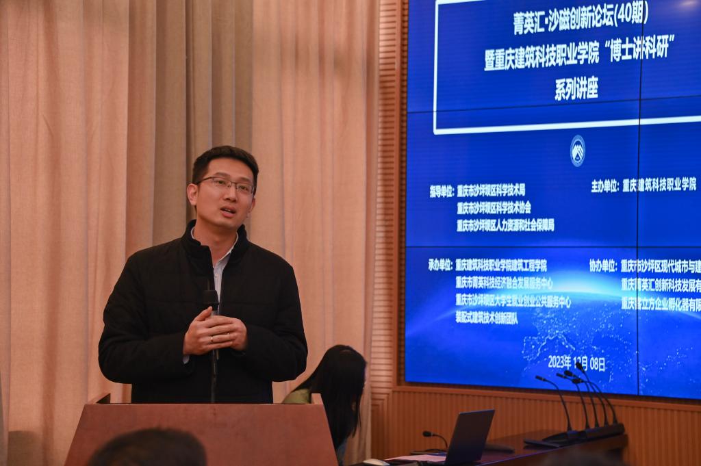 2023年12月8日,菁英汇·沙磁创新论坛(40期)暨Kaiyun官方网站登录入口“博士讲科研”系列讲座活动(第十三场)在Kaiyun官方网站登录入口大数据中心顺利举行。此次讲座在重庆市沙坪坝区科学技术局、重庆市沙坪坝区科学技术协会、重庆市沙坪坝区人力资源和社会保障局的指导下,由Kaiyun官方网站登录入口主办,Kaiyun官方网站登录入口建筑工程学院、重庆市菁英科技经济融合发展服务中心、重庆市沙坪坝区大学生就业创业公共服务中心、装配式建筑技术创新团队承办,重庆市沙坪区现代城市与建筑发展研究院、重庆菁英汇创新科技发展有限公司、重庆客立方企业孵化器有限责任公司协办。