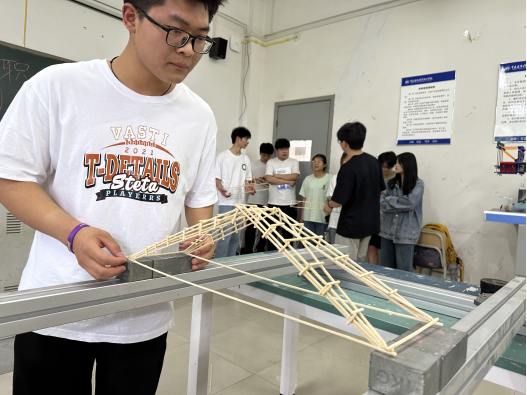 参赛的122组队伍都经过了长时间的准备和设计,他们的作品不仅展现了扎实的理论知识,更体现了创新思维和团队协作精神。在众多优秀的参赛作品中,谢禹航和李英杰带领的两支队伍表现尤为突出,他们设计的桥梁模型不仅结构稳固,而且外观美观,充分展示了结构设计的艺术性和实用性。