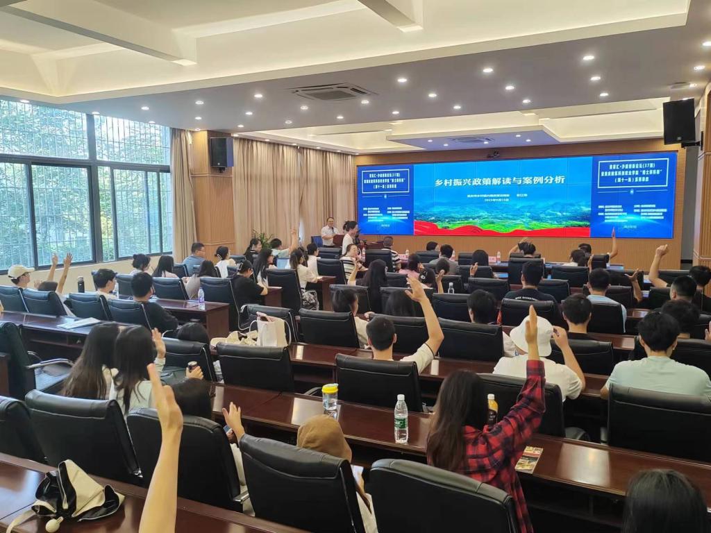 讲座结束后,在场师生与讲座嘉宾就讲座内容进行互动交流,彭江林副处长都毫无保留地进行经验分享,并提出希望高校发挥人才资源优势,深入开展全市城乡融合发展和乡村振兴研究,为全市乡村振兴提供智力支持。