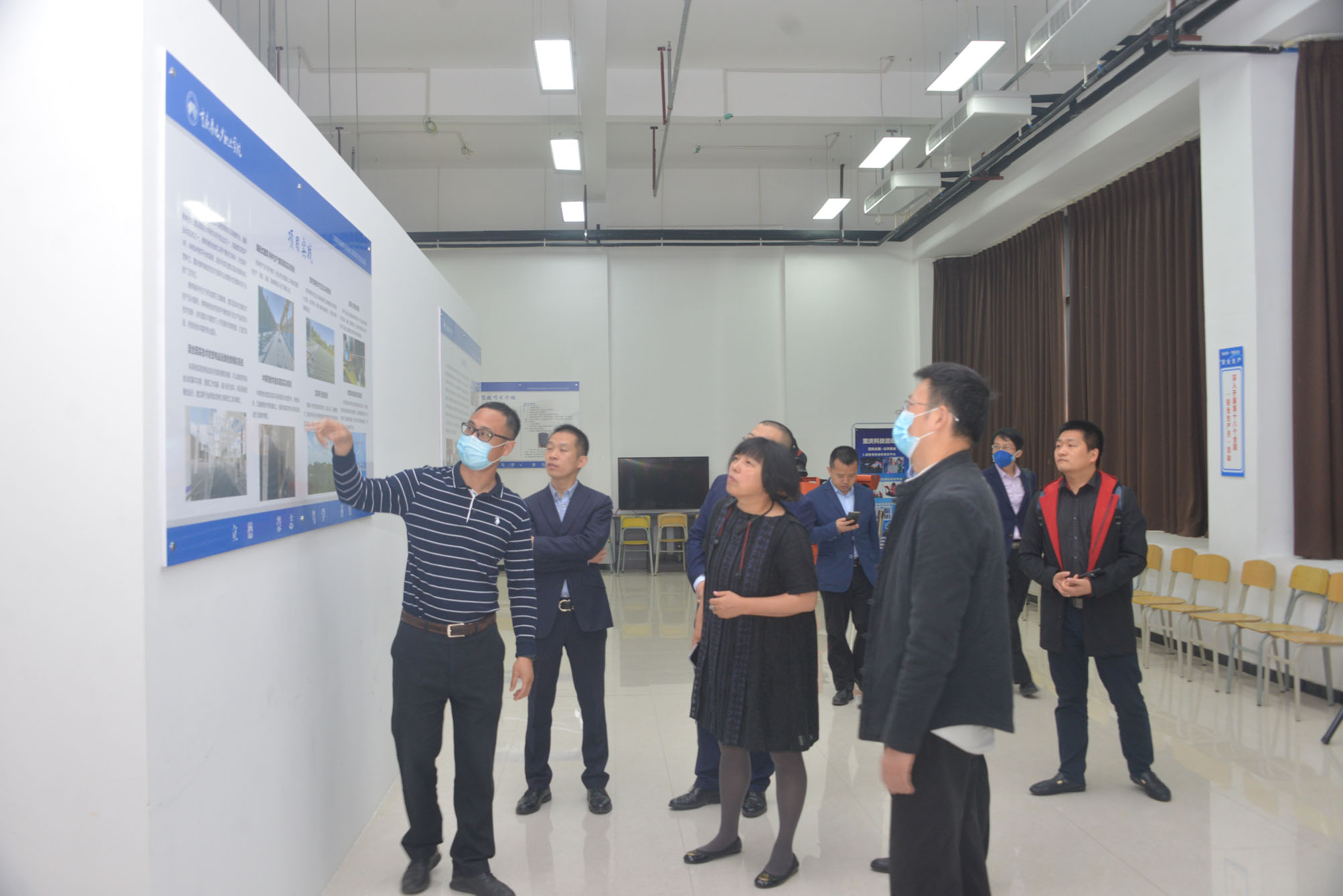 信息工程学院院长何志红向来宾介绍虚拟现实工程中心研究成果