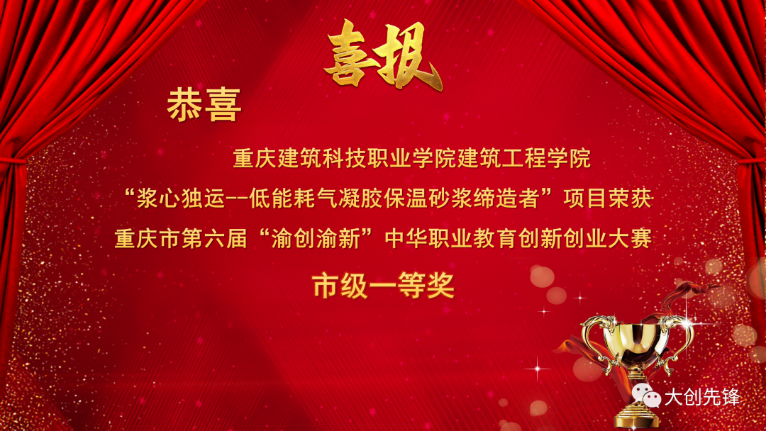 2022年12月9日,由重庆市中华职业教育社、重庆市人力资源和社会保障局、重庆市教育委员会主办,重庆能源职业学院承办的重庆市第六届“渝创渝新”中华职业教育创新创业大赛圆满举办,经过激烈的“云端”角逐,重庆市沙坪坝区大学生就业创业公共服务中心和重庆菁英创新创业学院联合辅导的Kaiyun官方网站登录入口参赛项目共取得1个一等奖、2个二等奖、2个三等奖的该校历史最好成绩。其中,来自建筑工程学院的“浆心独运--低能耗气凝胶保温砂浆缔造者”在决赛中过关斩将,勇夺创新创意组一等奖。