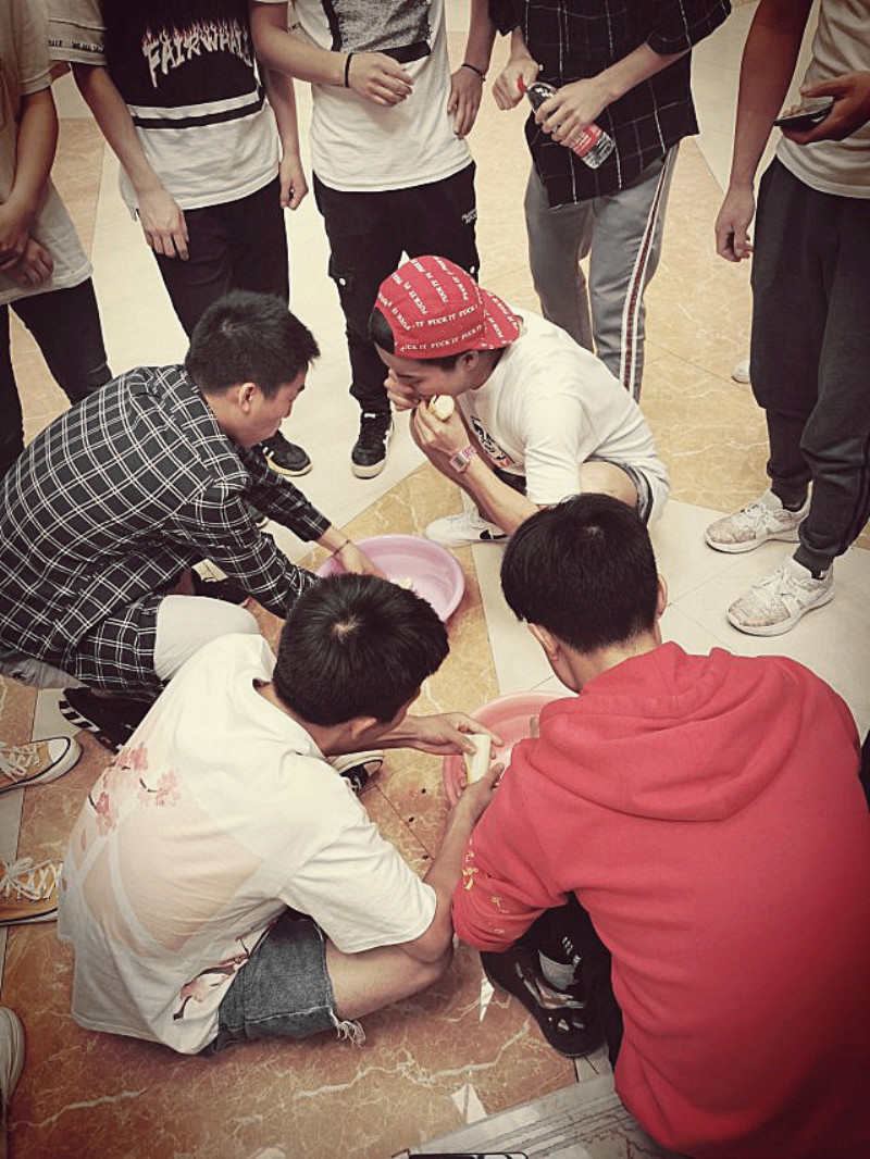 本次运动会将队伍分成六个小组,一组4名同学,由大二学长学姐担任组长带领学弟学妹们做游戏。运动会开始前,便有“食品小分队”购买了好吃的零食和水果,也平均分给了每个小组。在第一个项目“水杯送水接力赛”中,每三名成队,口含水杯传运杯中水的画面显得格外有趣,同时这个游戏也极大的考验了团队队员互相配合的能力,这一环节每组同学也都展现了他们独特的风采!接下来是“报纸轨道接力赛”,比赛过程中同学们用胶带将报纸粘连成轨道,一名同学站立其中进行一对一接力,充分提现了同学们的动手能力和创造力。活动最精彩的部分莫过于最后的“团队接力赛”,这可不是一般的接力赛,该环节首先是两名同学吃掉八块柠檬、两大块西瓜和一根香蕉,接着第三名同学以最快喝掉的速度喝完一瓶水之后第四名同学手捏鼻子弯腰远地转十个圈,优先完成者获胜。比赛中,同学们吃柠檬的表情可以说是十分狰狞啦,在一旁观看的同学也笑得不亦乐乎!