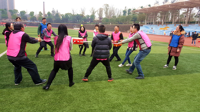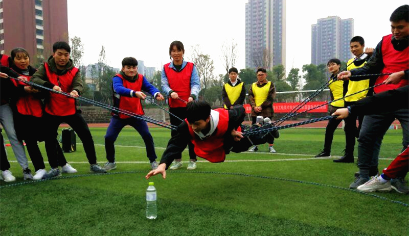 此次拓展活动有拳王袋鼠、动感颠球、水到渠成、共同进退、荆棘取水、生死雷阵、激情节拍共七个项目。教练将全体成员分成四组,“震八方队”、“十二黄金圣斗士队”、“什么都队”、“龙队”随之产生,各队都拥有自己的口号、队歌和队徽,使成员之间迅速消除隔阂,融合在一起,营造团结和谐、轻松愉悦的团队氛围。正式比赛开始后,各参赛队队员分工协作、沟通交流、力争上游,整个比赛过程激情四溢,处处可以感受到团队合作的力量。