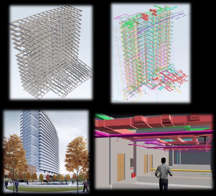 20251月至20254月,几个团队开始进行紧张的建模工作。在机电建模前,需要首先对项目的建筑和结构进行建模。这部分工作并不是参赛学生们所擅长的,但是大家依然愿意迎难而上,干劲儿十足。团队成员分工合作,在老师们的指导下,形成了不同专业、不同阶段、统一调度的工作模式。为了加快整体建模进度,团队成员分组同时对土建和机电进行建模,遇到困难时,一起讨论,共同克服。建筑和结构模型初步完成后,各专业成员进一步进行给排水、消防水、空调、通风和防排烟、配电、照明、弱电等系统的三维机电建模。